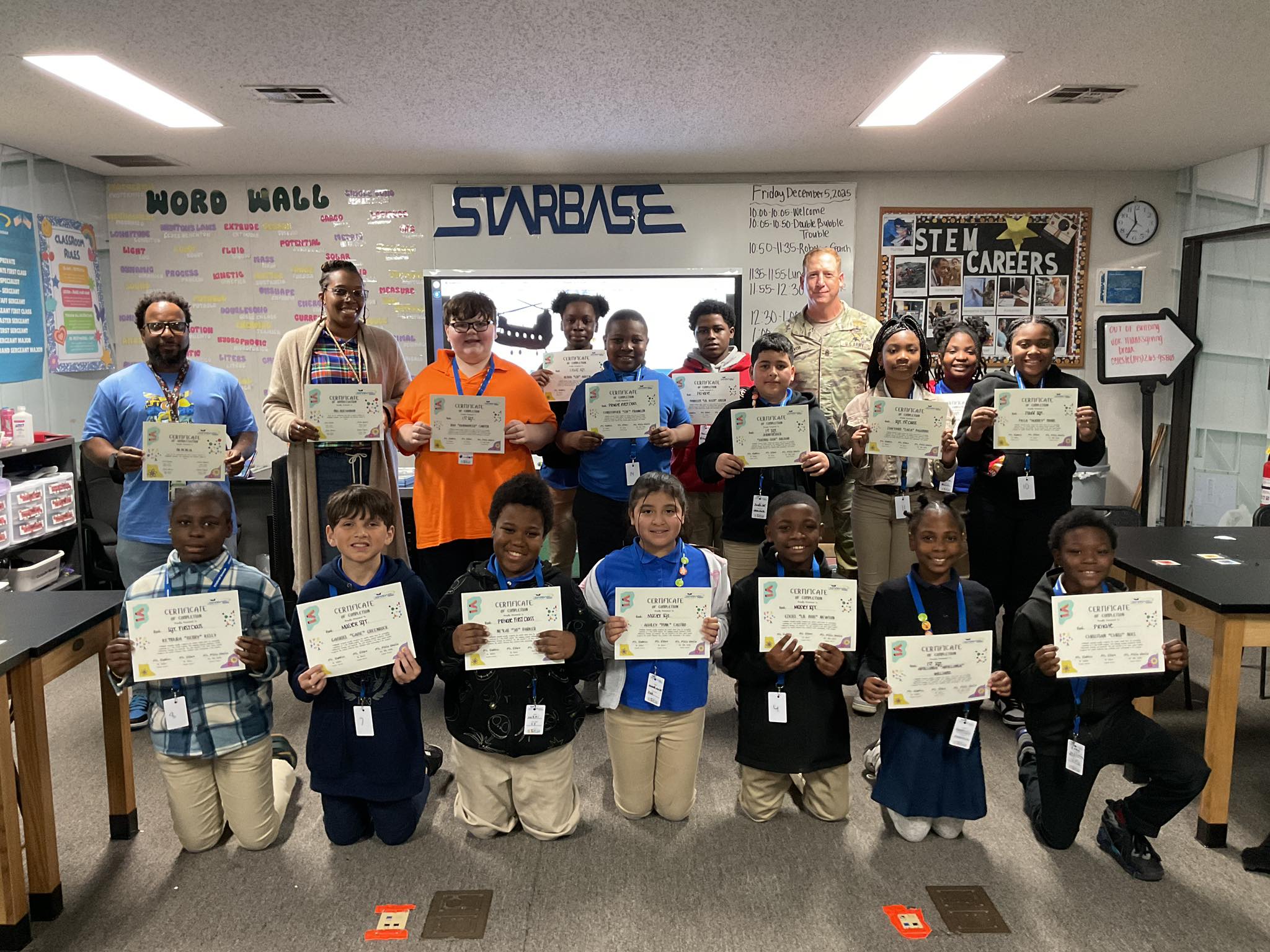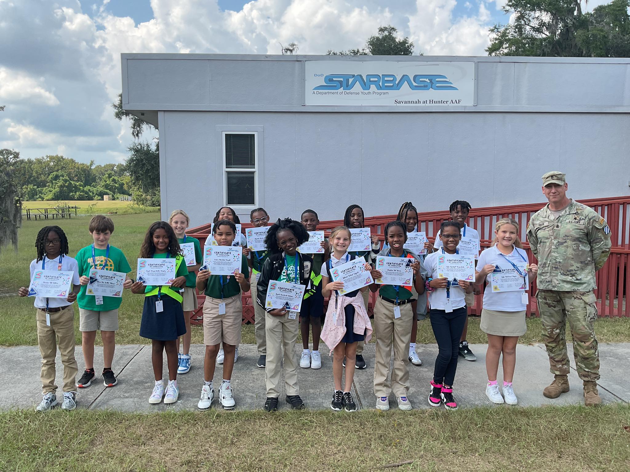 STARBASE Savannah re-opened its doors and held its first STARBASE class of 27 students the week of January 30th -Feb. 3rd, 2023 with Gould Elementary School. The first graduation speaker was Hunter Army Airfield Garrison Commander Lt. Colonel Cuthbertson and in attendance Mr. Travis Mobley, Deputy Garrison Commander and Mr. Will Kenyon COR of STARBASE Savannah.